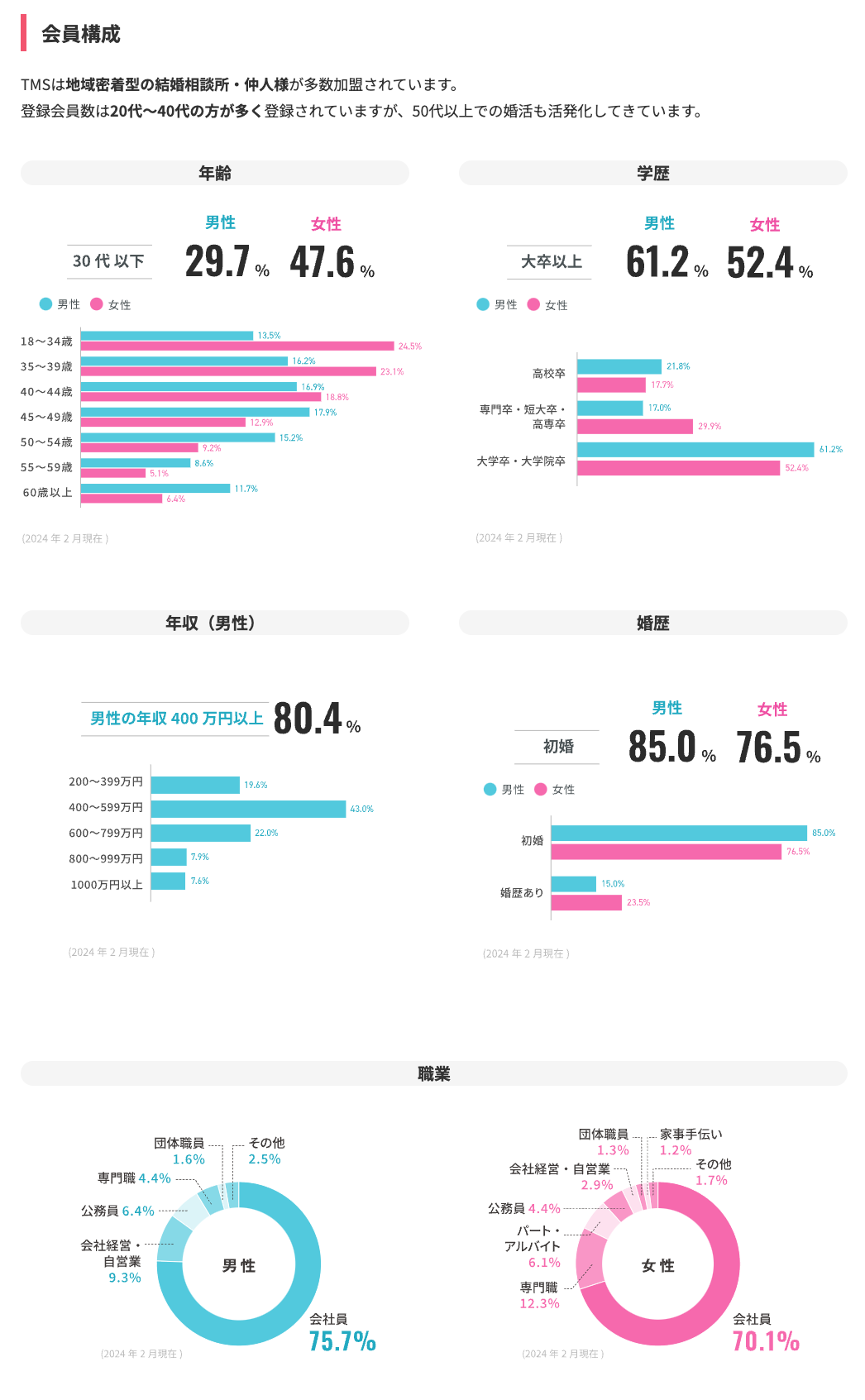 マッチングアプリと異なり、結婚を真剣に考える方が多数在籍している環境で、安心して活動頂けます。