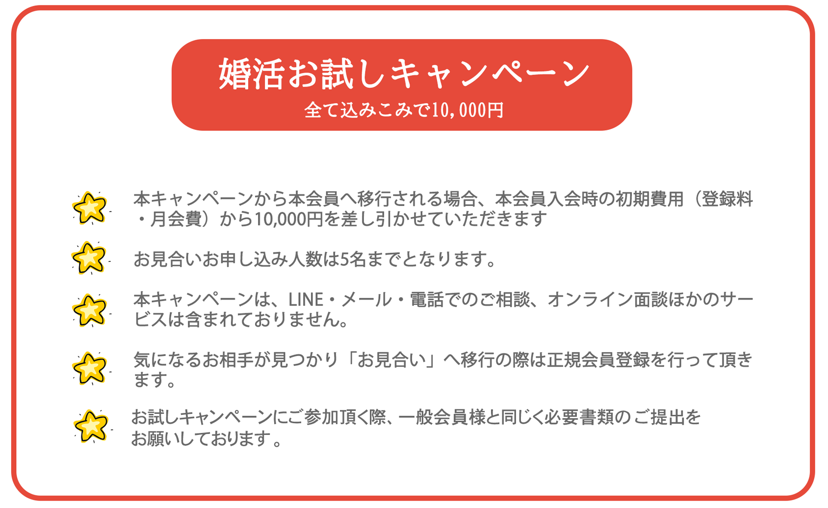| 婚活サポート費 | シンプルプラン:無料 | スタンダードプラン:無料 | アクティブプラン:無料 |